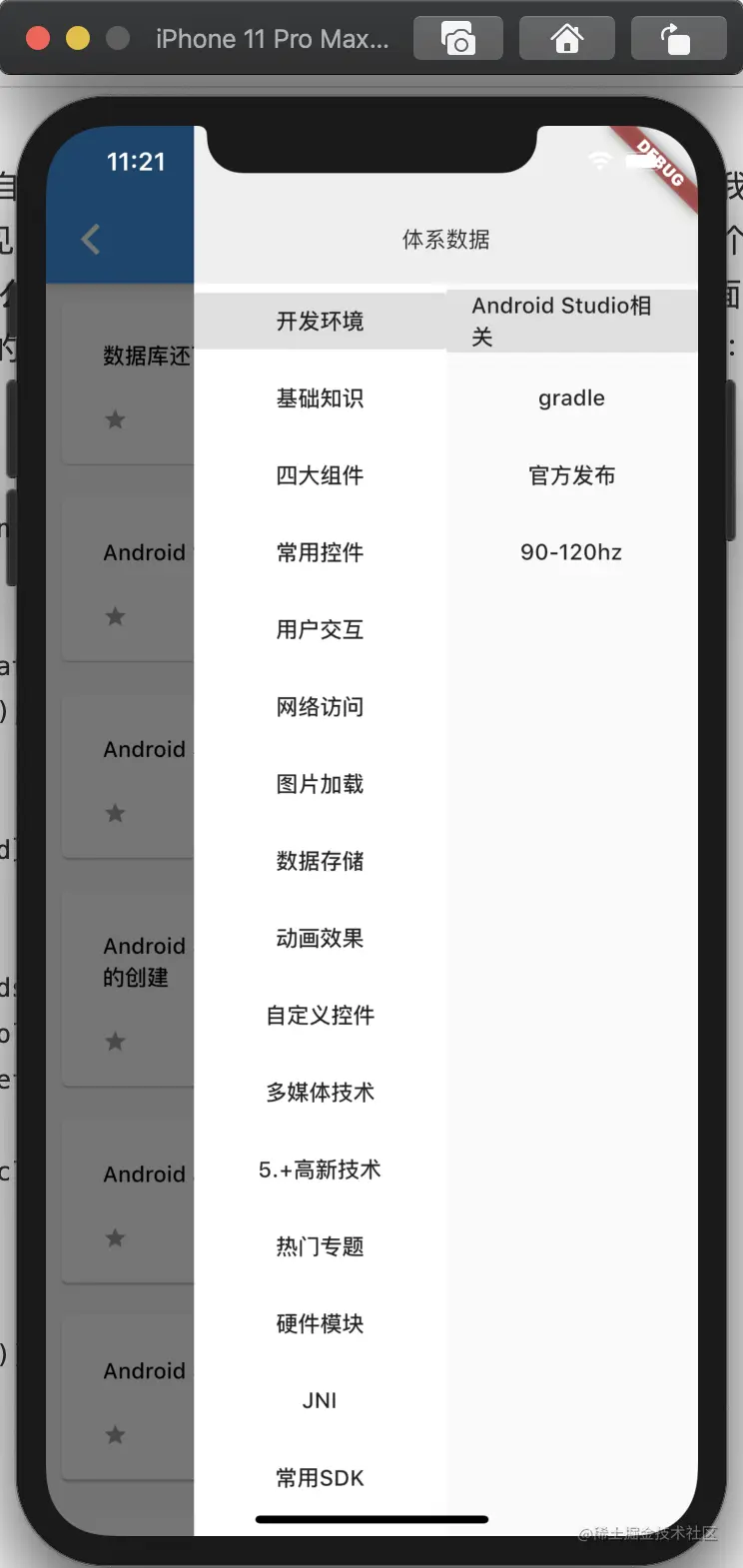 这里endDrawer方法是用来添加一个左滑菜单栏的,这里我们用来显示需要筛选的分类数据组件drawerSystem,该组件是由两个联动的列表组成的,同时在构造方法中,传人两个列表的点击时间,方便调用该组件的页面进行数据更新。这里要注意的是获取状态栏的高度和appbar的高度,还有我们要在endDrawer中自定义一个标题栏,但是endDrawer页面默认会有一个距离顶部的空白高度,我们要利用MediaQuery.removePadding方法来去掉顶部留白的部分,然后设置自己定义的标题栏。这里的appbar高度用常量kToolbarHeight来获取,MediaQuery.of(context).padding.top就是状态栏的高度,看到往上很多是直接写死,这样在不同的机型上面展示的效果会不一样的。 具体代码:
