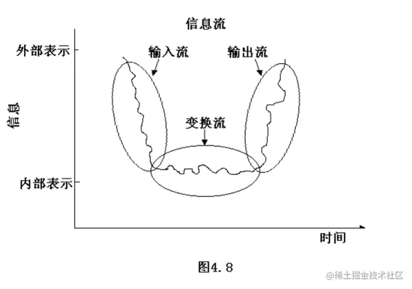 信息沿数据通路,先通过物理输入,由系统变换为逻辑输入,然后通过变换中心处理,再将信息的逻辑输出变换为物理输出。具有这种特性的信息称为变换流。