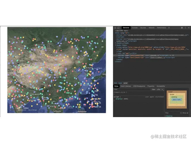 需要在地图上通过 圆点 展示业务信息,其中圆点的出现、在线、消失都有对应的动画,当数据量过大,圆点过多时, 存在以下问题: