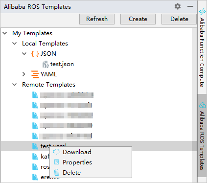 在 IntelliJ IDEA 窗口中选择 Alibaba Cloud View > Alibaba Cloud ROS,可根据您的需求进行相关操作。