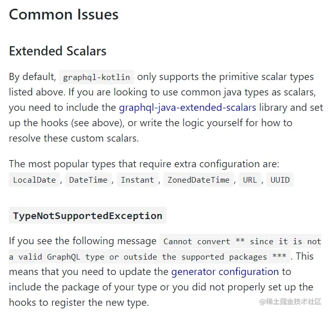 kotlin-graphql默认只支持基本的几个类型,需添加其他类型的支持,只能通过配置Hooks。