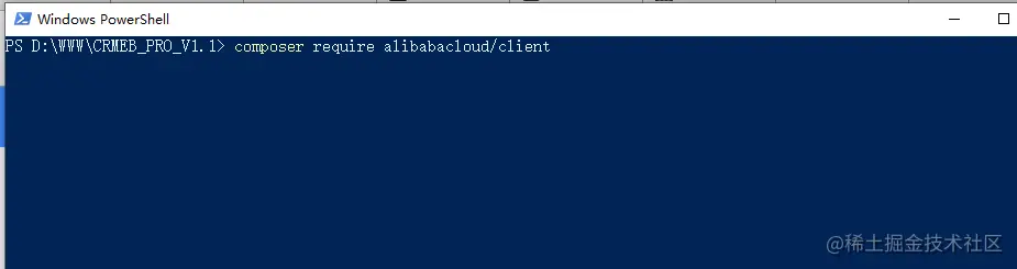 2. 在项目根目录下打开命令行输入:composer require alibabacloud/client 按回车进行安装sdk