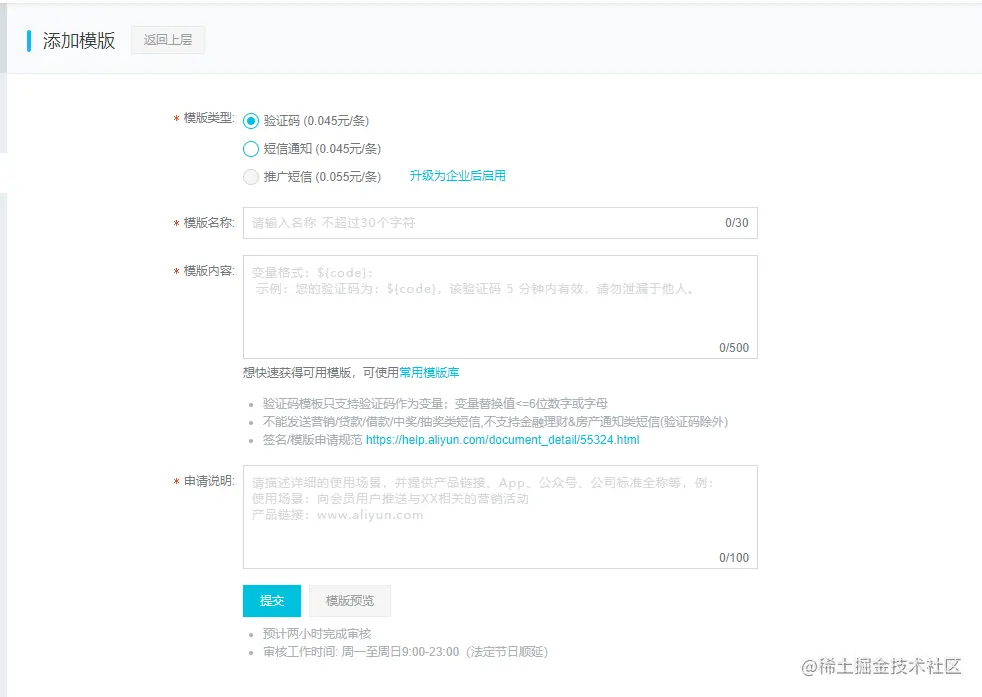 - 3.3 等待签名和模板审核通过。