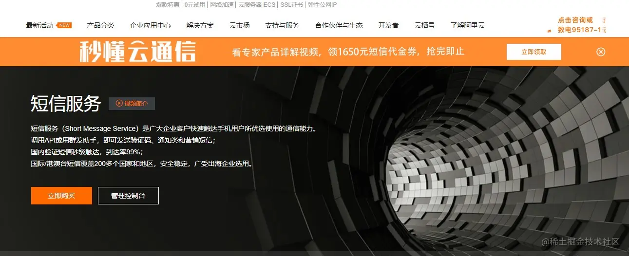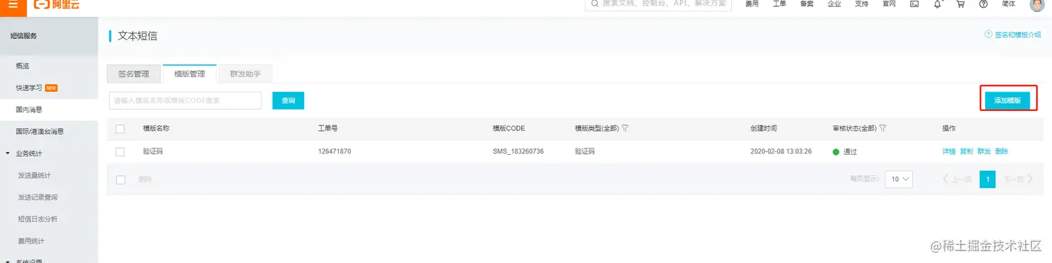 1. 首先登陆阿里云后台找到短信服务,点击控制台 - 进入短信服务
