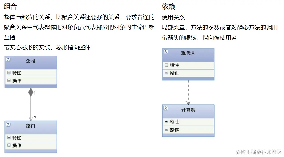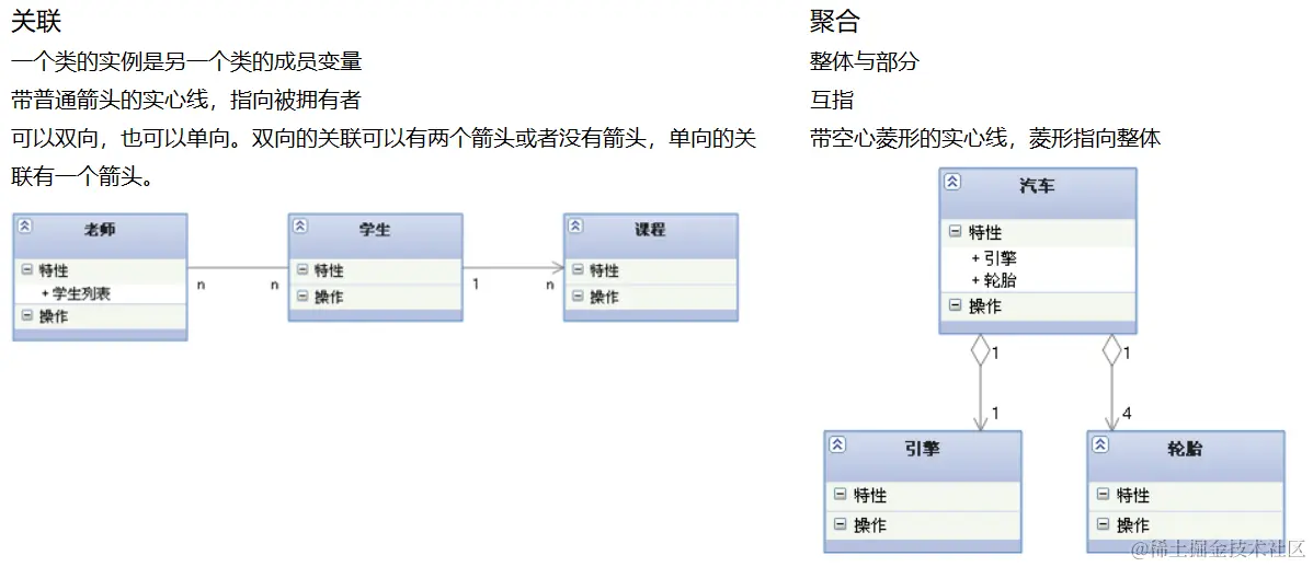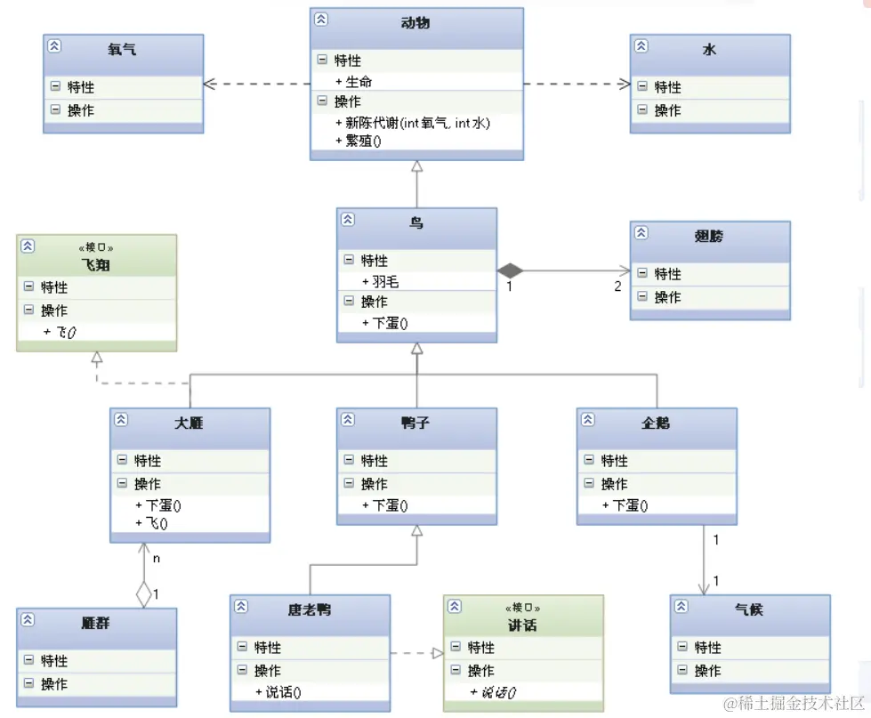 UML类图 乔木辛 2020-08-19 275 阅读1分钟 转自:blog.csdn.net/tianhai110/… 常见关系: 泛化,实现,关联,聚合,组合,依赖 各种关系的强弱顺序: 泛化= 实现> 组合> 聚合> 关联> 依赖 下面这张UML图,比较形象地展示了各种类图关系: