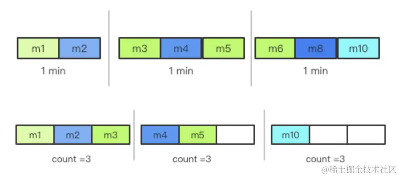 在整个流处理数据中,经常需要以聚合方式进行数据收集和处理,通常以时间或者是数据数量为计量单位来进行,这种每个集合就属于 window。