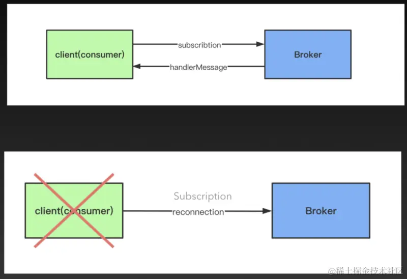 此 PR 修复了当宕机重启后,消息生产消费错开产生的竞态条件,做法就是在中间加一些检查机制。在 consumer 要打开一个连接时,添加状态检查,如果当前 connection 的状态为 closing 或者 closed 状态时,我们不需要发送 subscribe 的 command 到 broker 即可。