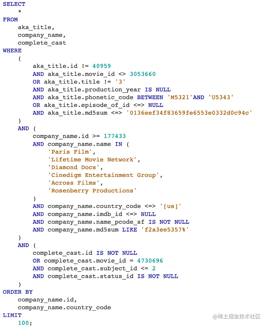 我们预先导入了一份 IMDB 数据集到 imdb 数据库中,可以通过如下命令使用 Join Order Benchmark 的查询度量有效性指标。