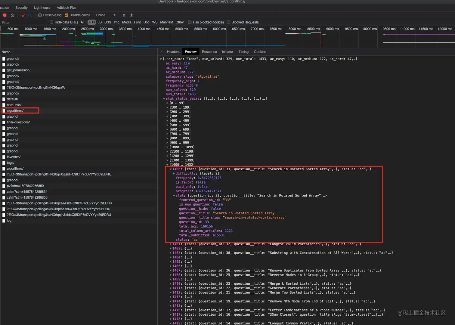 可以看到这个接口每道题目都有,不过是倒叙排列,题号最大的在最上面。这里比较重要的有下面几个参数:
