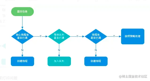在到达了设置的corePoolSize后,继续提交到线程的任务会直接进入队列中,当提交的任务将将队列填满后,继续提交的任务会创建临时线程来执行,临时线程与核心线程相同,在执行完任务后同样也会监听队列。当临时线程监听队列时间超过设置的keepAliveTime 设置的时间后会将其销毁。但是如果池内的线程数到达了maximumPoolSize设置的线程数后,则不会在继续创建新的线程,这时如果再有任务提交到线程池,则会触发拒绝策略,根据制定的拒绝策略来处理提交的任务