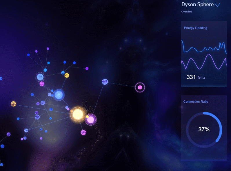鼠标悬停在一个星体上会触发选中状态,右侧会监控该星体的相关数据。