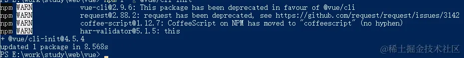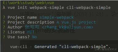 vue-起手式 sky9527 2020-08-19 88 阅读1分钟 一 vue-cli2 安装 (已安装npm 在cli3+ 的版本下 使用vue cli 2 命令 ) npm i -g @vue/cli-init 二 使用模板创建一个webpack 项目 vue init webpack-simple cli-webpack-simple 参数 : cli-webpack-simple 项目名称 完成交互式命令窗口: 至此:初始化项目完成项目结构如下图: