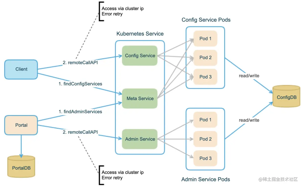 - Config Service和Admin Service都是多实例、无状态部署,需要通过注册中心进行服务注册和发现