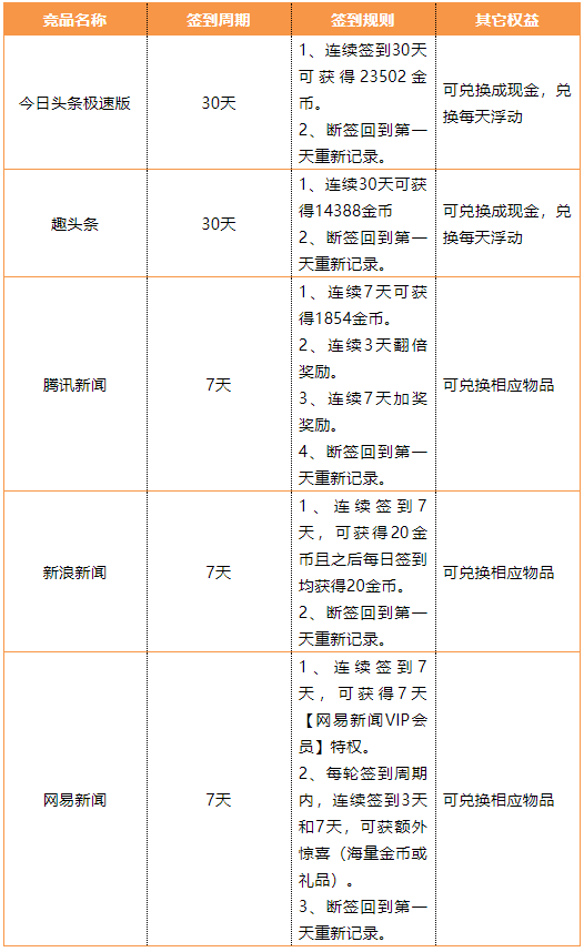 基于此,本次竞品分析将着重对几款主流新闻资讯APP的用户签到进行功能对比。