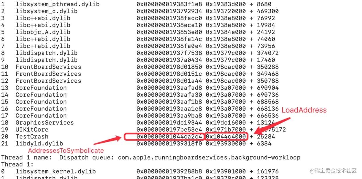 LoadAddress和AddressesToSymbolicate