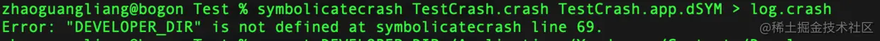 使用如下命令进行符号化: symbolicatecrash TestCrash.crash TestCrash.app.dSYM > log.crash