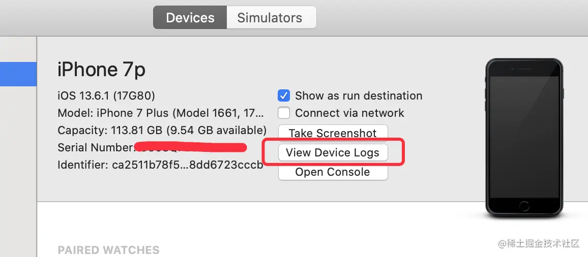 手机连接Xcode, 打开手机端的报告列表