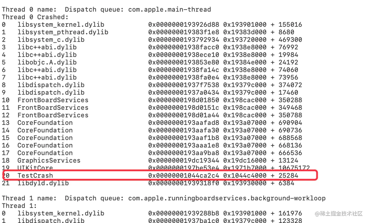 先看一下完全没有符号化的崩溃报告: