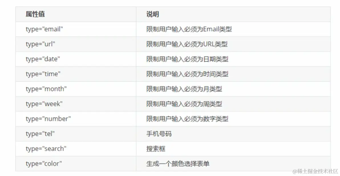 HTML5新增了一些input标签的type类型。