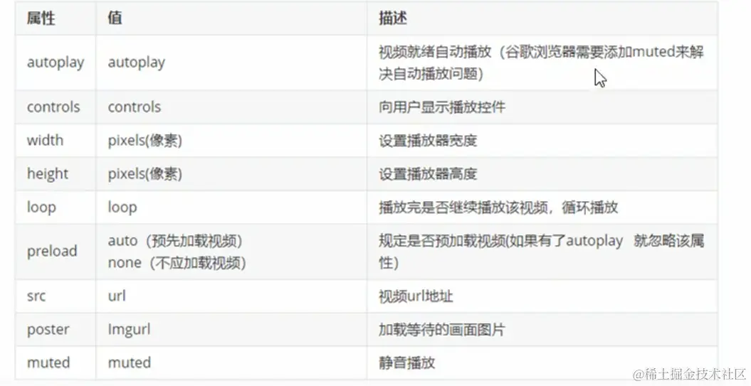 最重要的就src。视频的路径。autoplay控制自动播放。loop控制循环播放。
