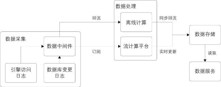 从图可以看出,在数据采集和数据服务部分实时和离线是公用的,因为在这两层中都不需要关心数据的时效性。这样才能做到数据源的统一,避免流式处理和离线处理的不一致。