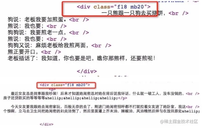 #找到所有的段⼦内容<div class = "f18 mb20"></div>
