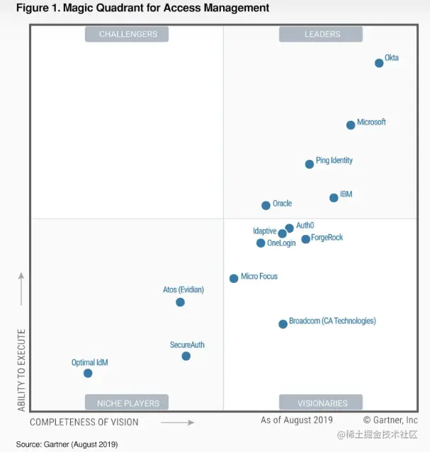 2019年8月发布的 Gartner Access Management(来源:Okta 官网截图)