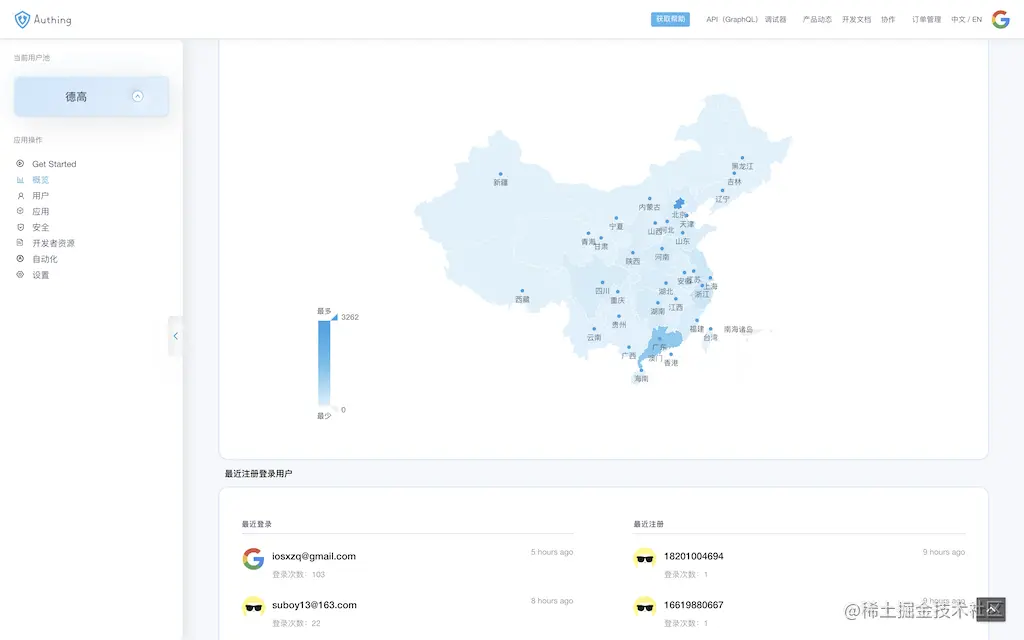 Authing 的系统界面(来源:Authing 官网截图)