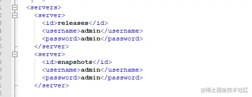 在你的setting.xml的<servers>节点里添加,username和password都是你私服的账号密码,注意这个账号一定要有上传的权限,否则还是会报错的~