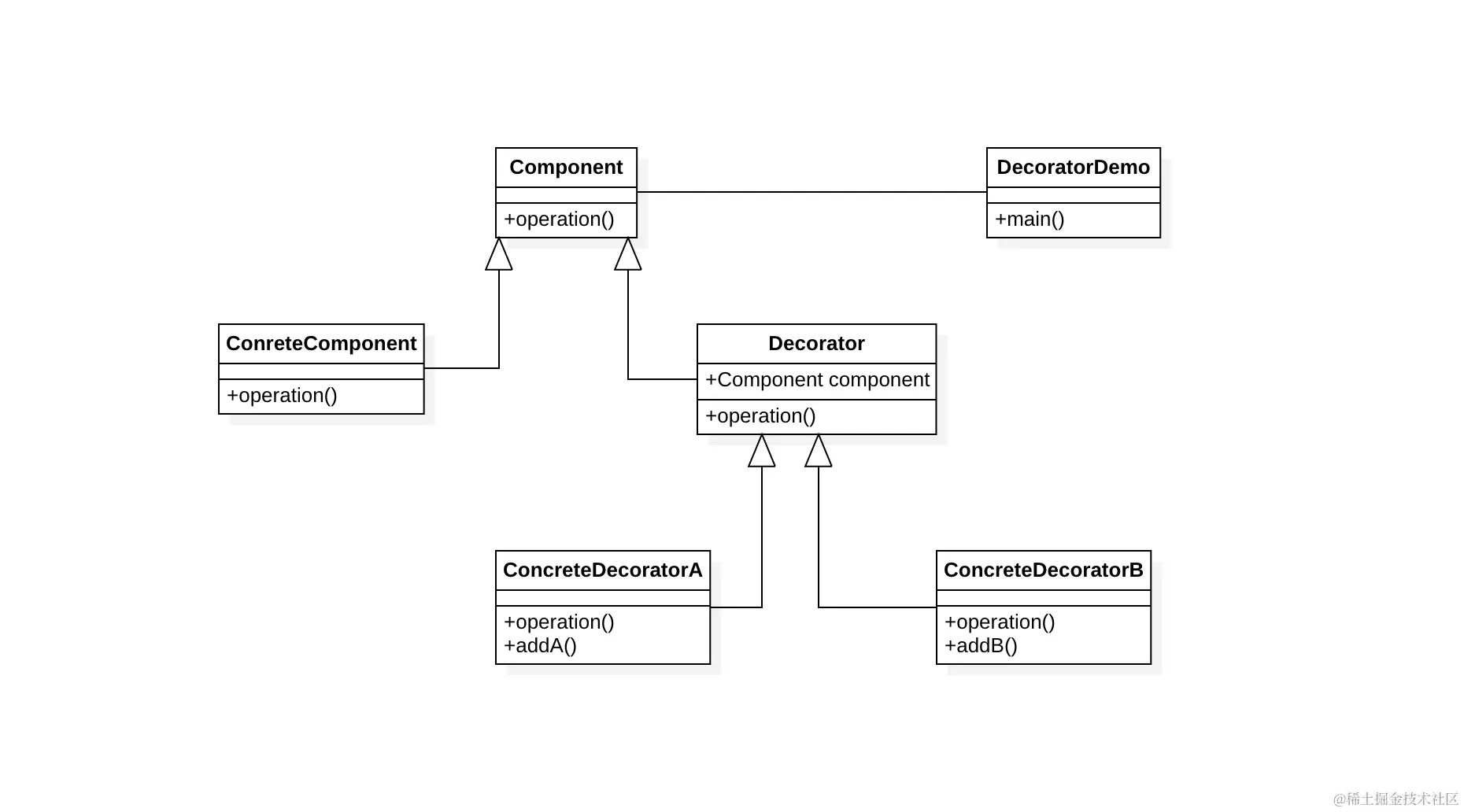 - 这个抽象里面提供着被装饰者的一些操作,这样客户端就可以完全面向Component编程了。