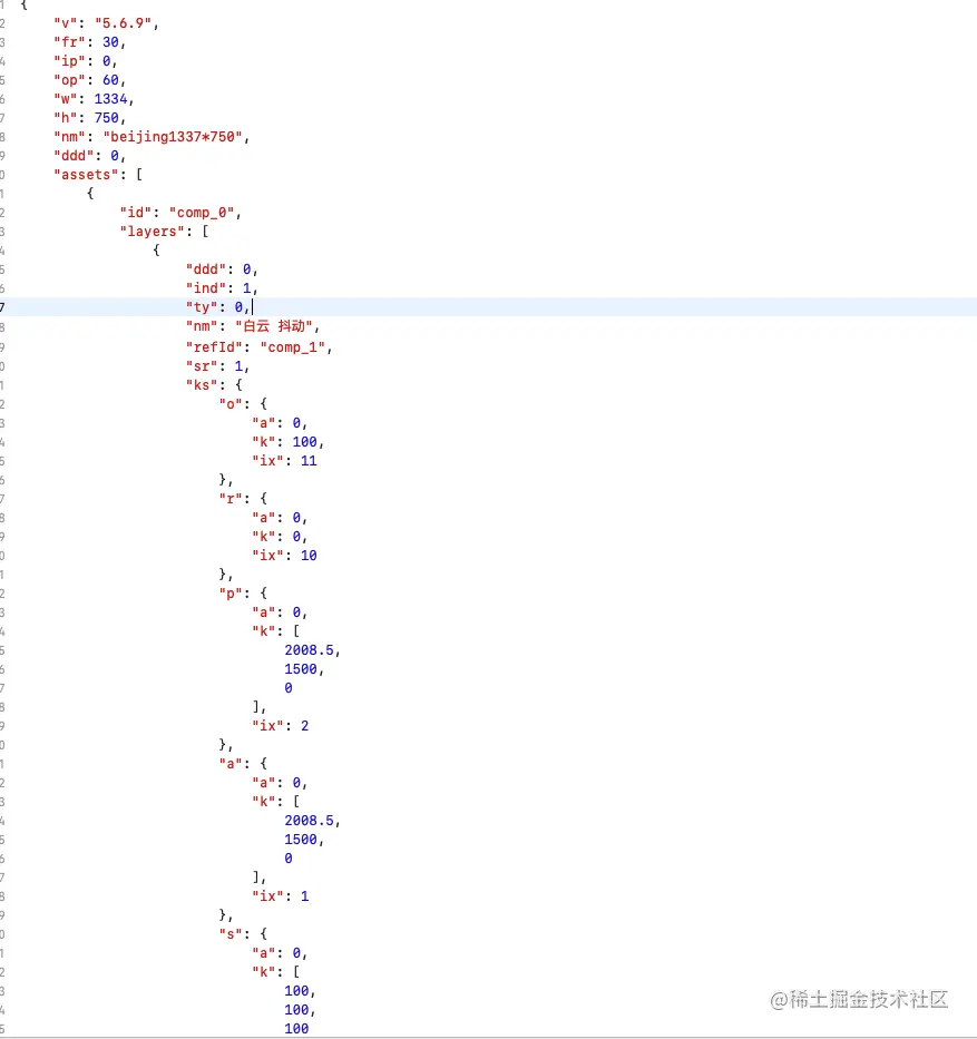 以上属性和json文件对应的key有一一对应关系,比如layerName对应json文件中的nm,layerType对应ty等等,每个layer中包含Layer所需的基本信息,transform变化需要的则是每个LOTKeyframeGroup 类型的属性。这里面包含了该Layer 的 transform变化的关键帧数组,而masks 和 shapes 的信息包含在上面的两个同名数组中。