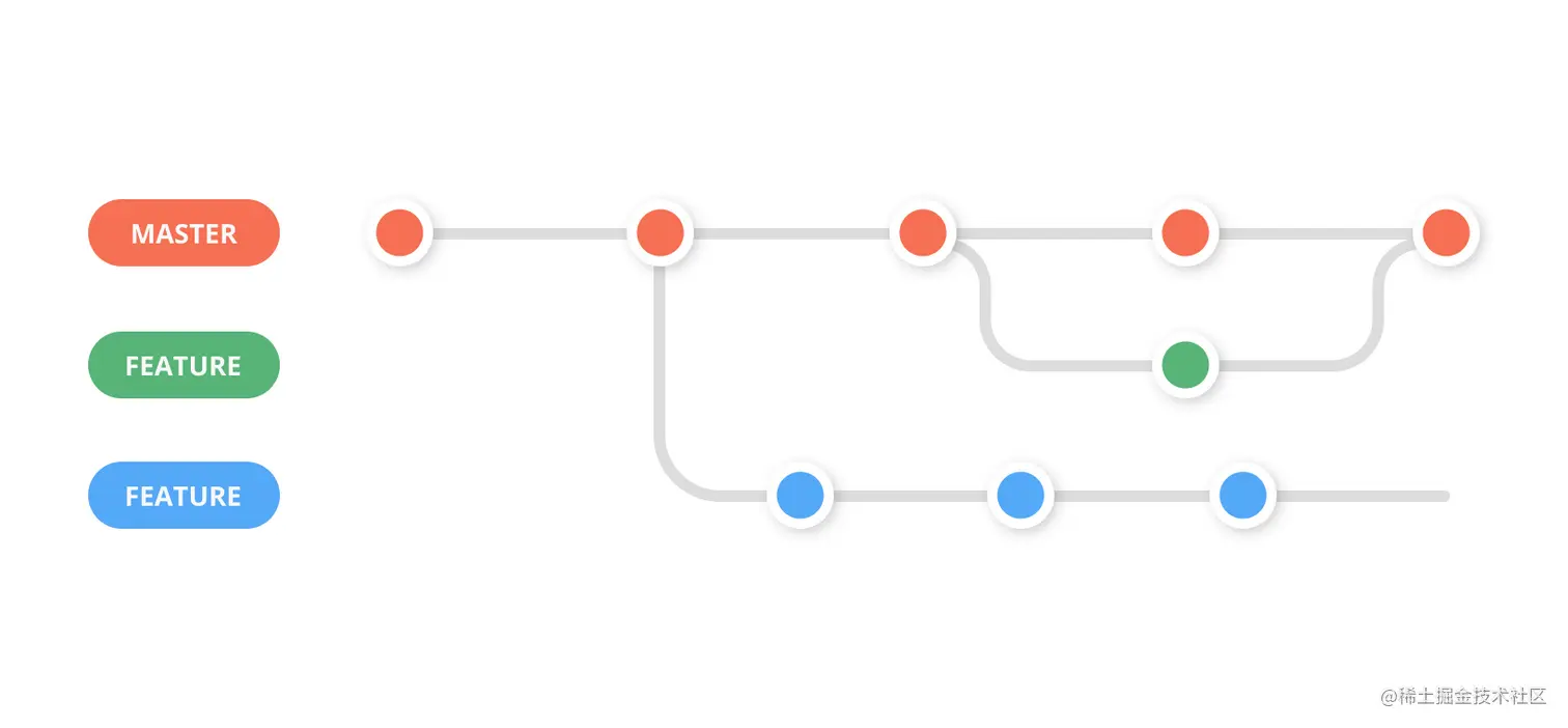 当有多个开发人员在同一个代码库上工作时,Git 功能分支(feature branch)工作流是必须的。
