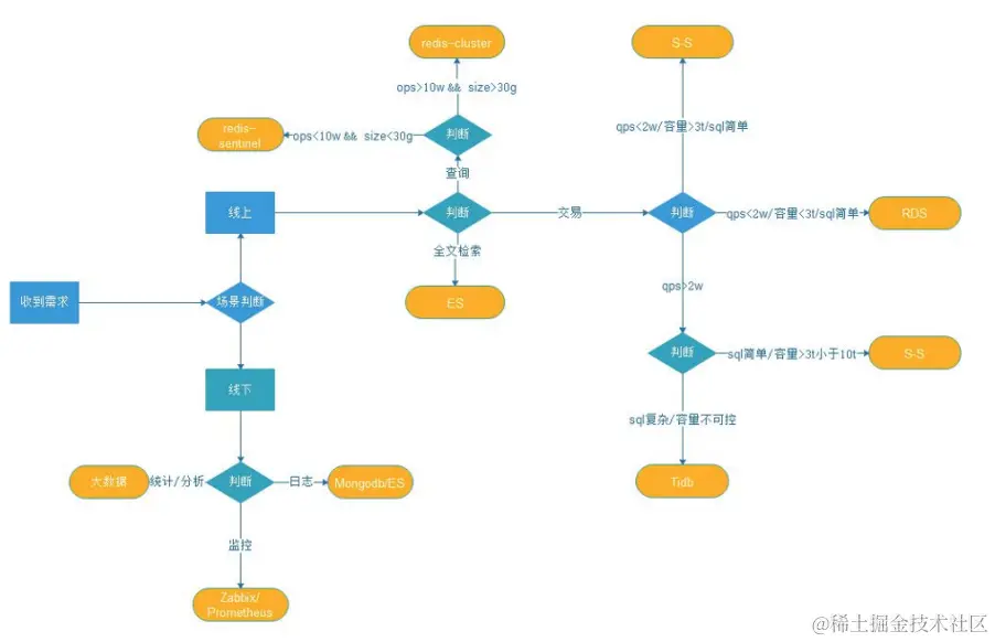 首先是容量上,比如说我的容量小于 3T ,QPS 小于 20000,大表小于 10 个,这种场景就会使用 RDS;