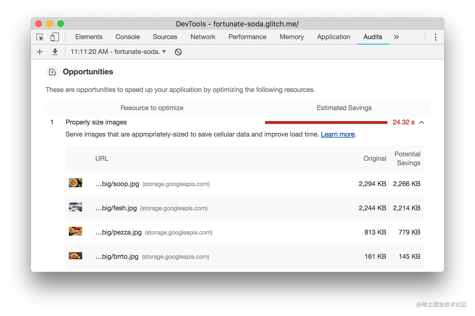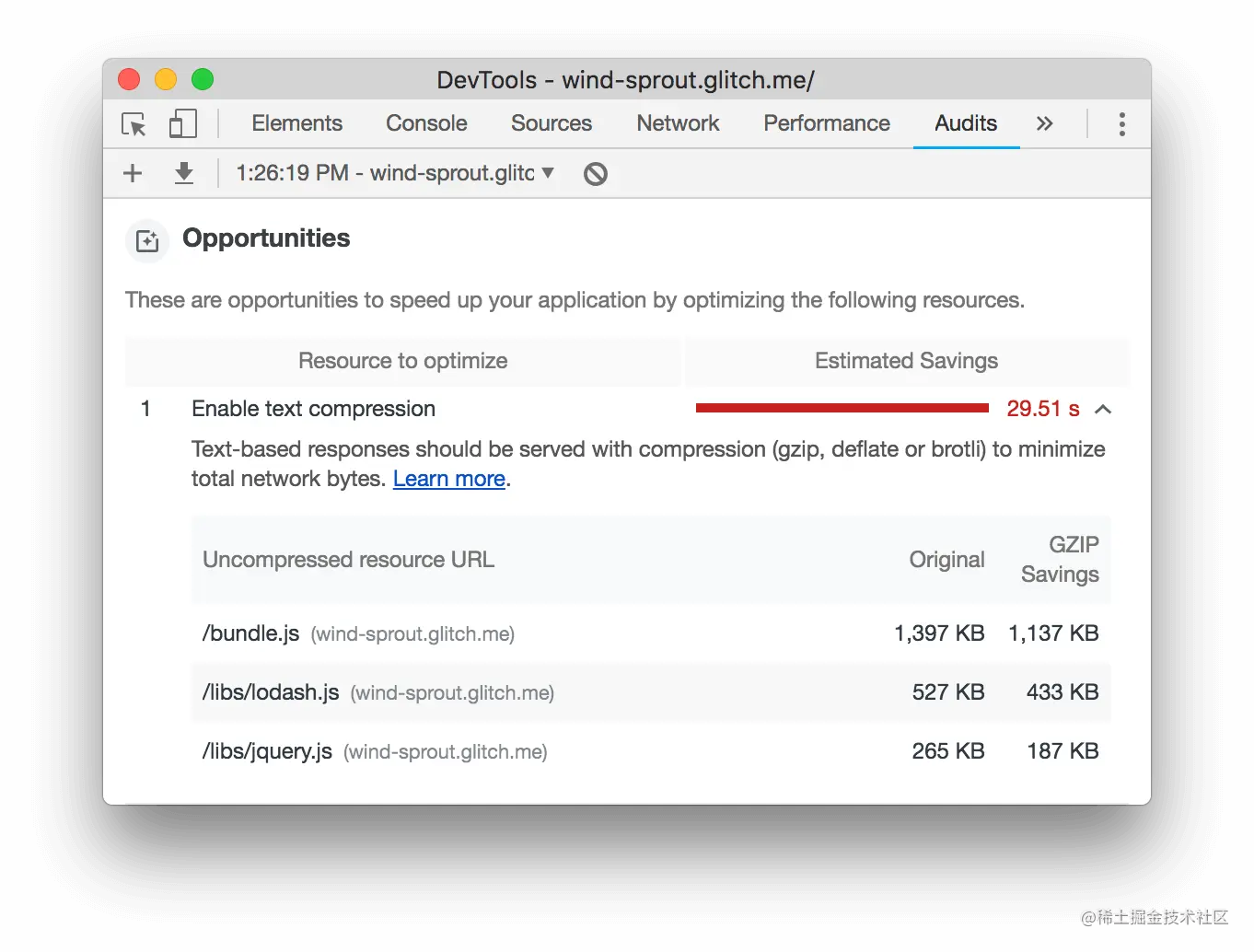 机会部分提供了具体的提示,告诉你如何提高这个特定页面的加载性能。
