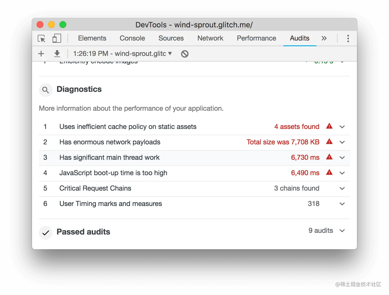 - 每当你开始优化一个网站的加载性能时,总是从审计开始。审核可以建立一个基线,并为你提供如何改进的提示。