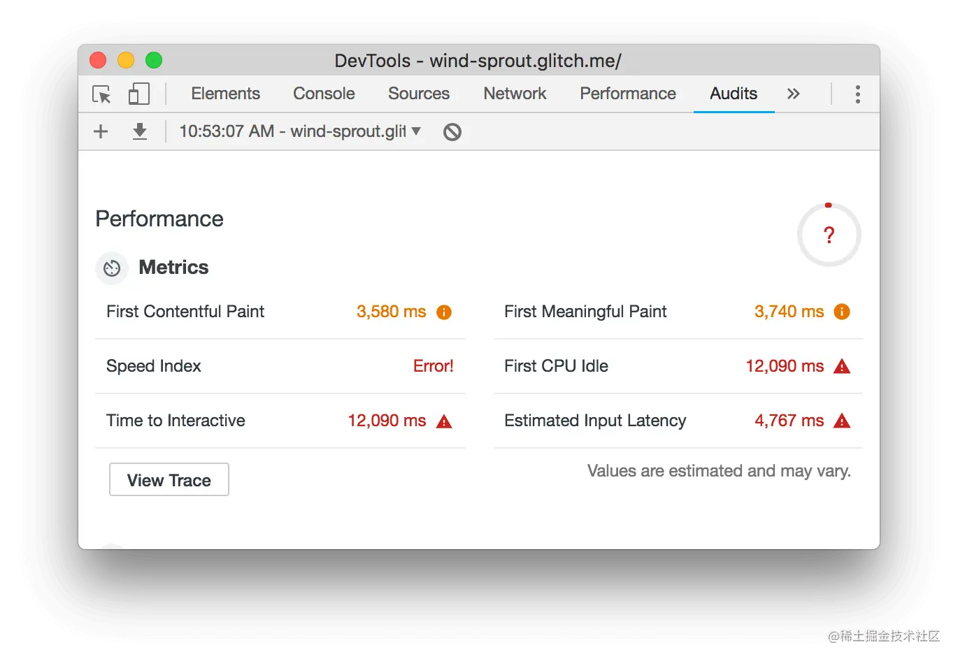 如果您在审计面板报告中收到错误信息,请尝试在没有打开其他选项卡的情况下从隐身窗口运行演示选项卡。这可以确保你是在一个干净的状态下运行Chrome。特别是Chrome扩展程序经常会干扰审计过程。
