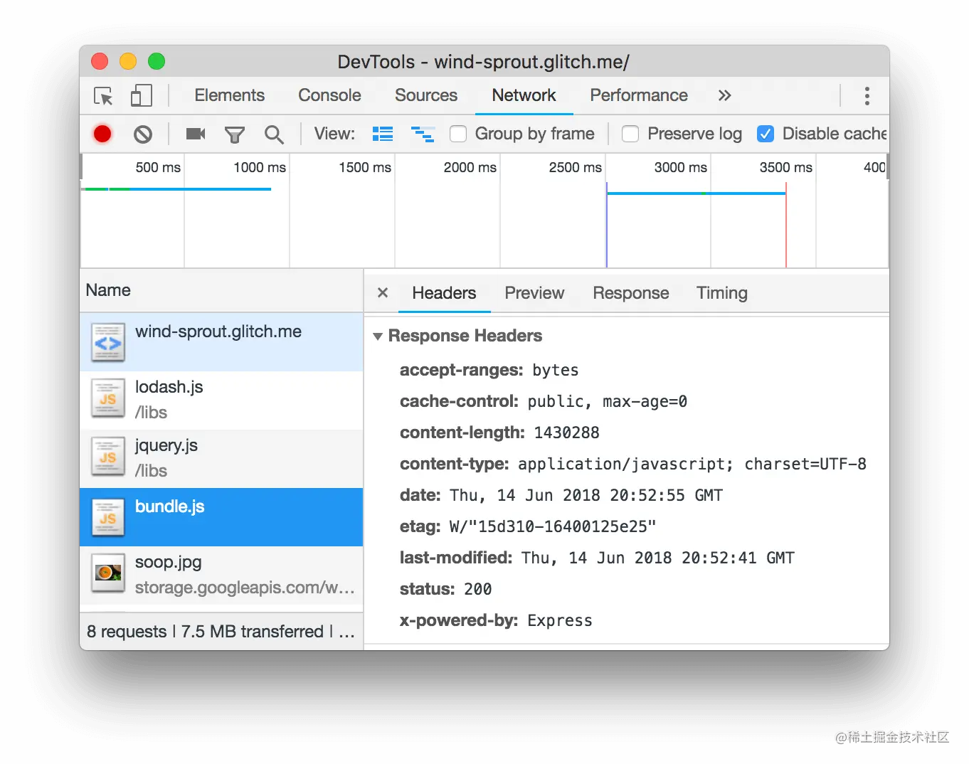 图25.Bundle.js 的 Response Headers 部分现在包含了一个