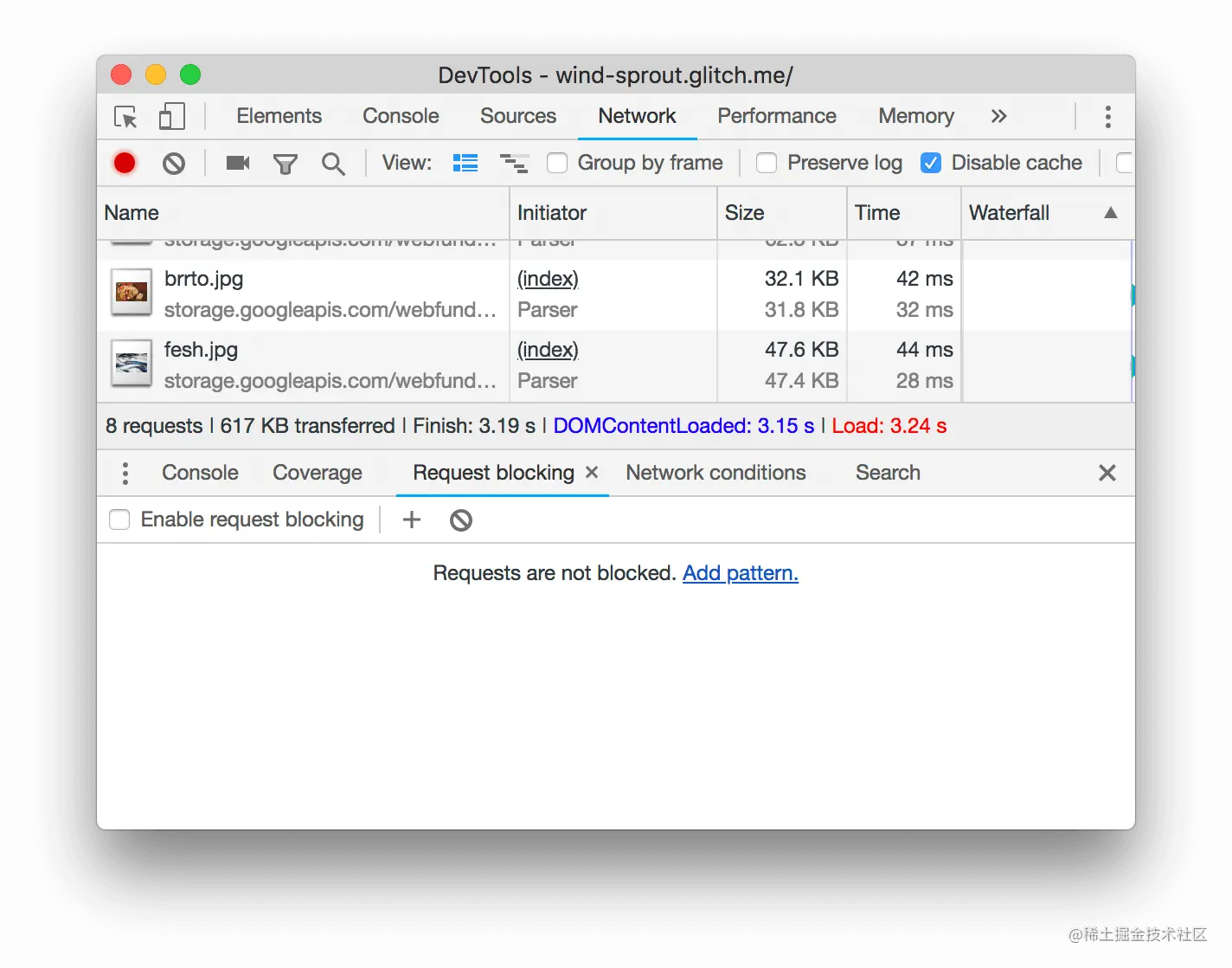 一般来说,请求阻塞选项卡对于模拟当任何给定资源不可用时,你的页面是如何表现的很有用。