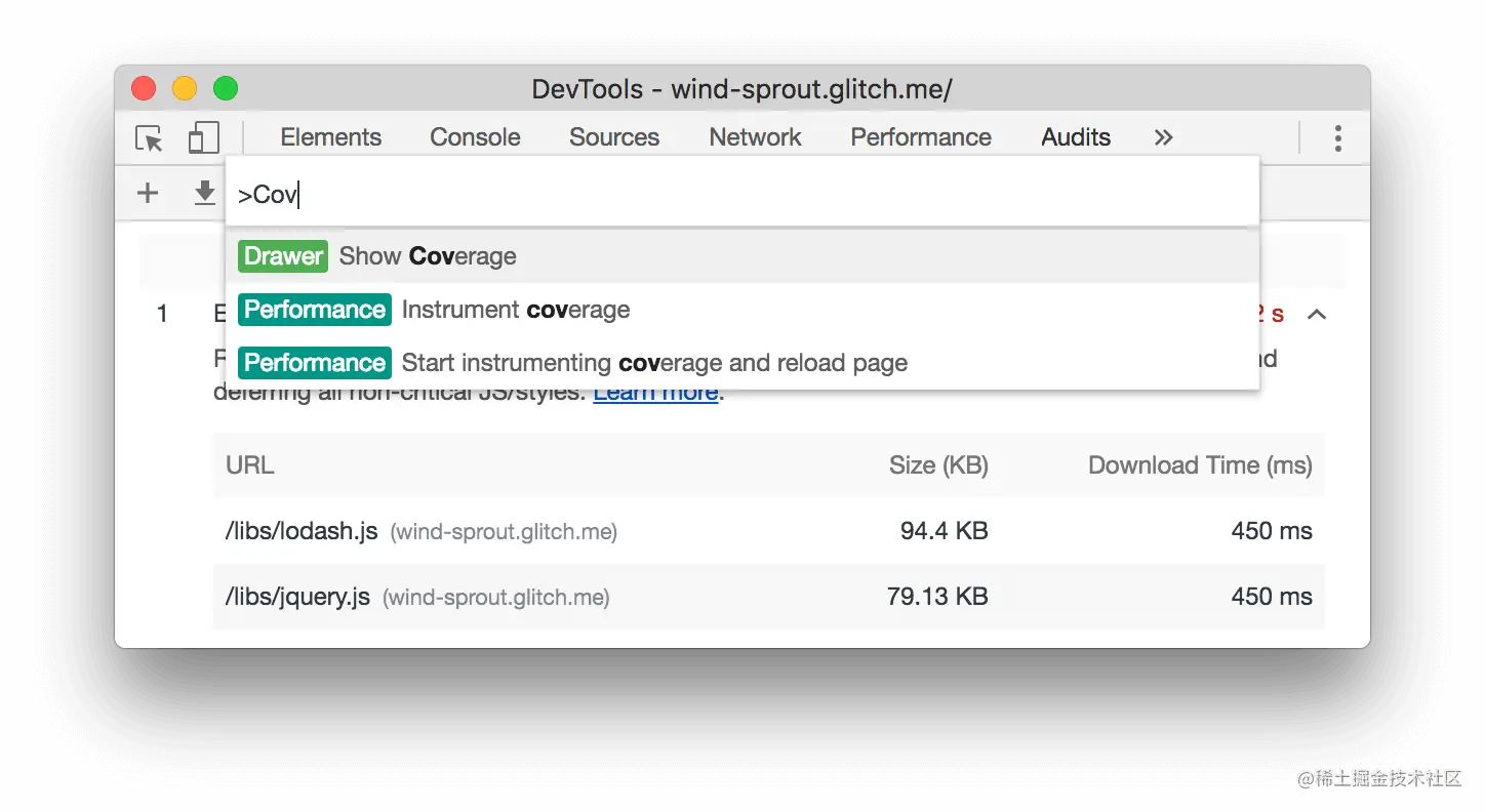 总之,当你在处理自己的代码时,Coverage选项卡可以帮助你逐行分析你的代码,并且只运送页面加载所需的代码。