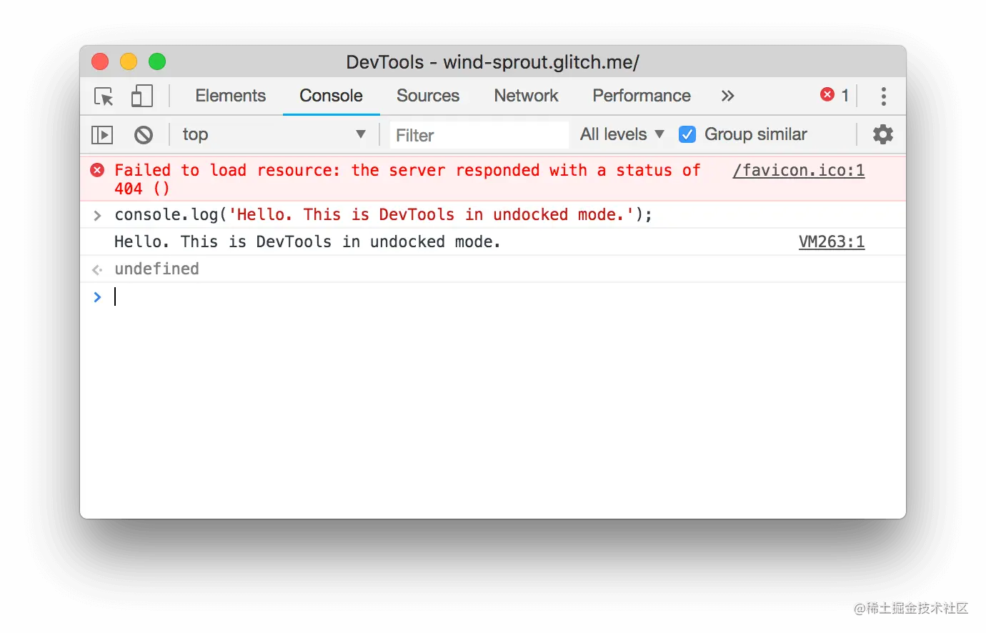 在本教程的其余截图中,DevTools将显示为一个单独的窗口。您可以通过按Command+Shift+P(Mac)或Control+Shift+P(Windows,Linux,Chrome OS)打开命令菜单,输入Undock,然后选择Undock进入单独的窗口。