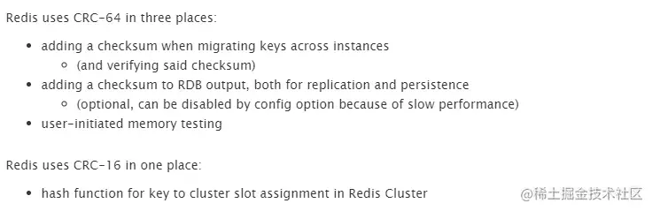 他先说了下 CRC 本质上是无法并行的,因为下一次迭代的值取决于前一次迭代。然后又指出了 Redis 中的哪几个地方使用到 CRC。
