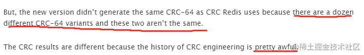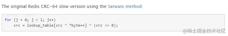简单翻译下:我在网上乱翻了一番,想看看其他人是如何实现 CRC-64 的。但是大部分是拷贝 Redis 的(哎,恨其不争)。