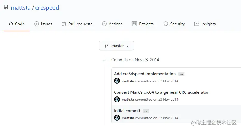 然后在当年,2014-11-23,mattsta 创建了 crcspeed 库,并且提交了实现。