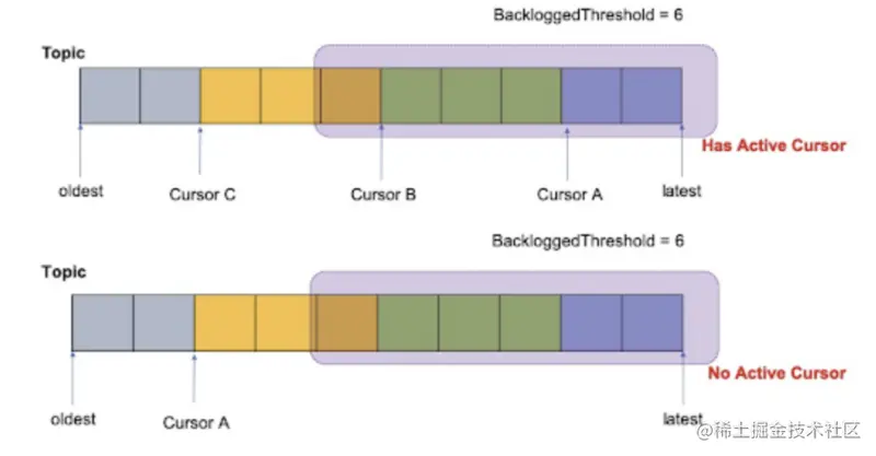 - Cursor 的 lag 在 managedLedgerCursorBackloggedThreshold 范围内