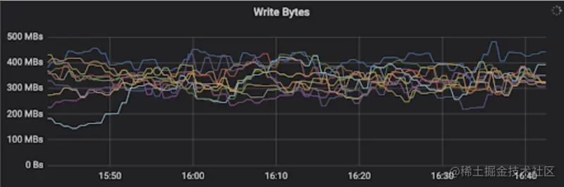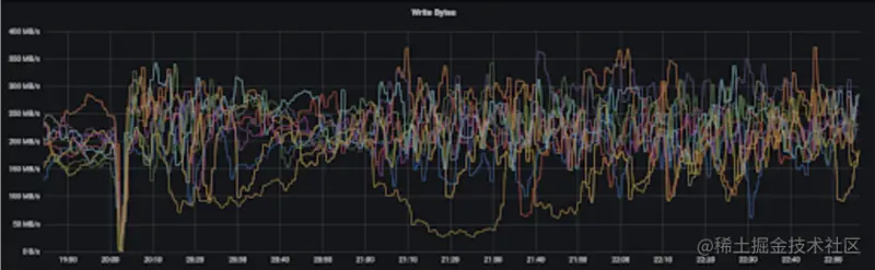 - Bookie 节点之间负载并不是均匀的,最高流量节点和最低流量节点可能相差几百 MB/s