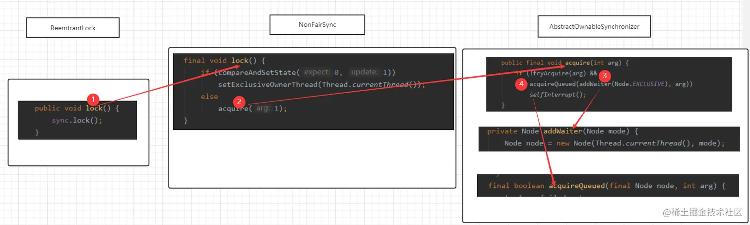 直接看源码基本一会儿就晕车,我尝试绘制出lock方法的调用链路。然后结合源码解释。