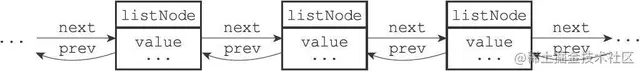 - 链表是双端结构,listNode结构体中带有prev和next指针,因此获取某个节点的前置节点和后继节点的时间复杂度都是O(1)