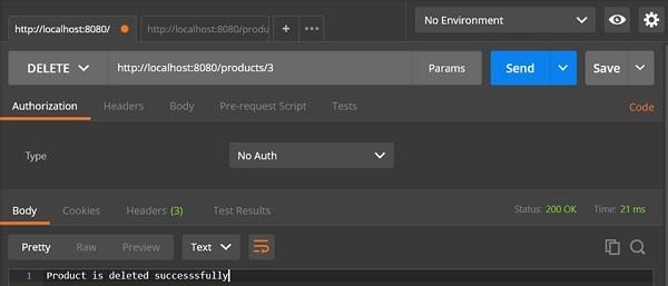 DELETE API URL 为: [http://localhost:8080/products/3](http://localhost:8080/products/3)