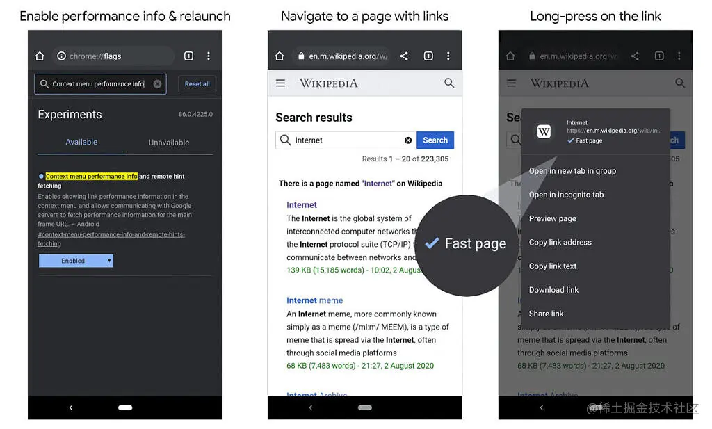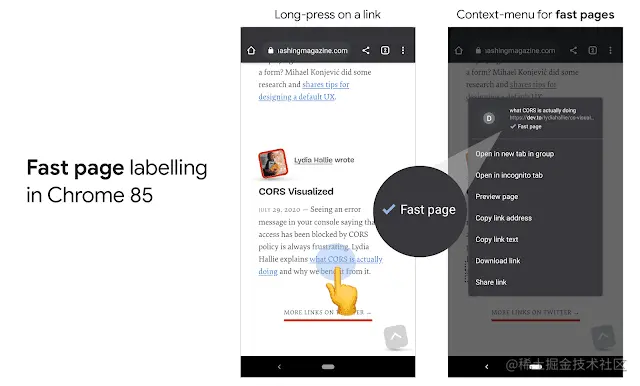 在过去的几个月里,谷歌一直在推出Chrome开发者工具,以减少页面加载时间,实现安全浏览,并构建原生应用程序般的体验。现在,该公司正在推出一项功能,将突出网络上的高质量用户体验。从安卓版Chrome 85测试版开始,谷歌将在上下文菜单中标注通向 "快速页面 "的链接。当一个网页被标注为快速时,意味着导航到该网页的用户历史上有 "特别好的体验"。