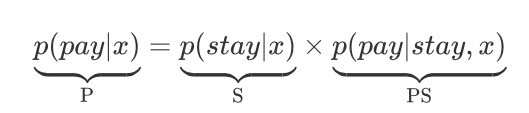 可以看到,在进行下单率预估的时候(P的计算),用户停留意图识别(S的计算,或者说离开意图,二者等价)将可以用来作为辅助任务提升预测效果。我们的实验也验证了这点。
